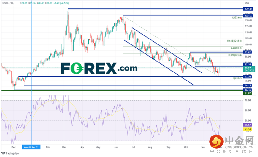 不过随着会议临近,“消息人士”称OPEC+将保持产量不变。此前,OPEC+于10月减产2,000,000桶/日,令市场感到意外。中国试图重塑其制造业的不确定性增加了OPEC+维持产量不变的可能性。中国的疫情和限制导致人们担心需求不足,从而拉低油价。然而,在过去几天里,中国宣布了几项新措施,有助于放宽疫情管控,其中包括制造业城市郑州。商店、电影院、出租车和地铁将重新开放。另一方面,中国于周三发布了11月份的国家统计局制造业PMI。此数据为48,而预期为49,前值为49.2,这是自4月以来的最低水平。疫情带来的中国制造业放缓和不确定性增加了委员会等待一切尘埃落定后再调整产量的可能性。