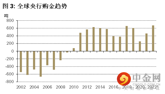 世界黄金协会的数据显示,2022年前三季度全球中央银行一共购买了673吨黄金,这是全球央行连续第十三年净增持黄金。而这9个月各国央行购买的黄金量就已经超过了有数据记录以来任何一年的购买量。