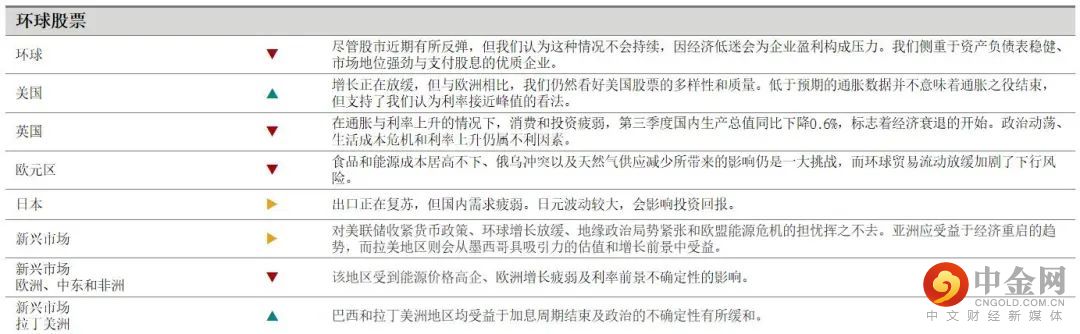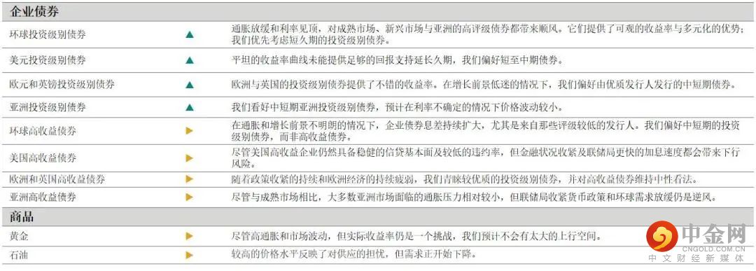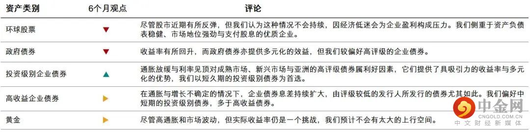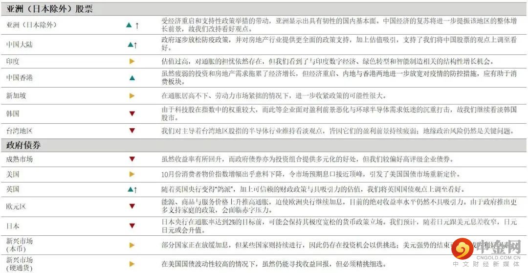 图标:↑对此资产类别的观点已上调;↓对此资产类别的观点已下调。
