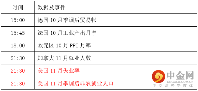 晚间将公布美国11月失业率以及美国11月非农就业人口,失业率预期为3.7%,与前值相符。非农数据预期为20万人,低于前值26.1万人,符合预期则利多黄金。投资者晚间应当关注数据影响,做好风险控制。