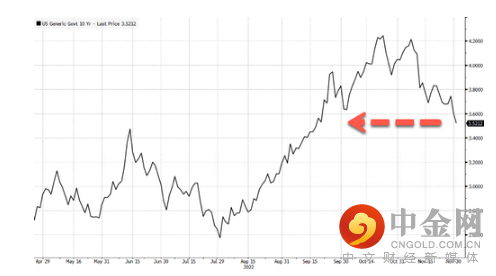 目前,有着“全球资产定价之锚”的10年期美债收益率在跌至3.50%关口附近后,已经刷新了9月以来的最低位,自年内峰值水平更是重挫了逾80个基点。