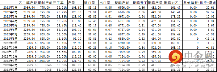 表4-1:2022年EG月度供需平衡表 (万吨)