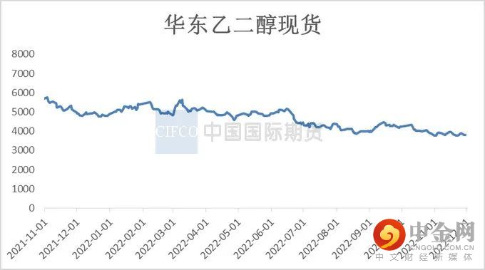 11月乙二醇价格弱势下行,乙二醇供应维持高位,新增陕西榆林化学60万吨装置运行正常供应量增多。需求端受聚酯减产影响进一步下滑,供需结构持续转弱,现货市场反弹空间受限。乙二醇现货价格下行明显,华东现货市场月均价3856元/吨,较10月下跌5%。月内最低价格3745元/吨,最高价格 3980 元/吨。