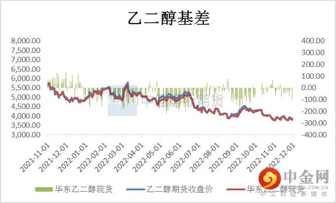 11月乙二醇现货基差小幅走弱,受榆林化学60万吨新装置投产后供应量增多预期影响,现货基差走弱。
