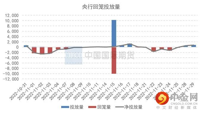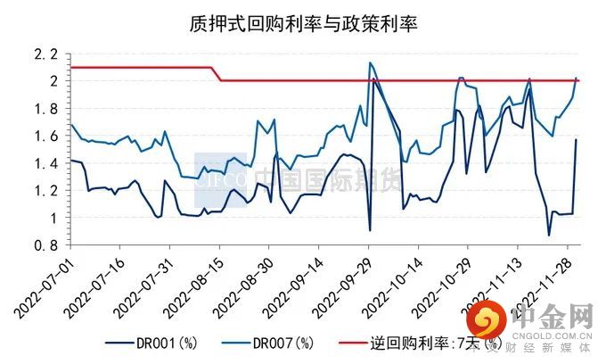 11月资金面呈现宽幅震荡态势,税期期间资金面收敛明显,主要回购利率隔夜盘中一度来到2.0%关口,而7天和14天资金利率均已升破2%,不过央行同期也加码逆回购操作规模,充分呵护流动性。除税期扰动外,另一主要原因还有因防疫“二十条”与地产“十六条”双重利空消息下引发的现券大量抛售,理财、债基和货基在赎回压力下纷纷抛售债券,叠加同业存单利率走高,踩踏式出货形成负反馈压力,加剧了市场流动性紧张局面。随后央行连续加大流动性投放,市场在央行出手后回归理性,资金紧势得到缓解。