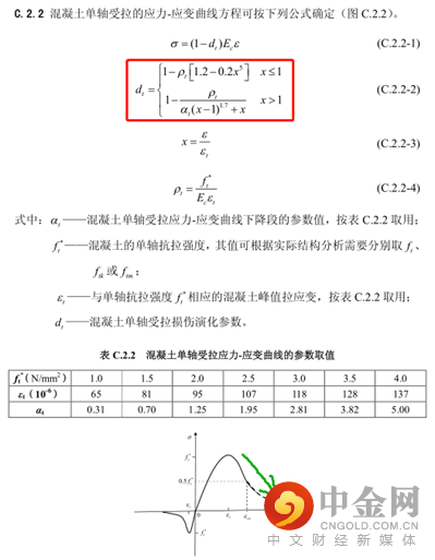 《混凝土结构设计规范》GB50010-2010附录C.2关于混凝土本构关系如图2-1,混凝土损伤塑性模型中dt和dc如图2-2所示。