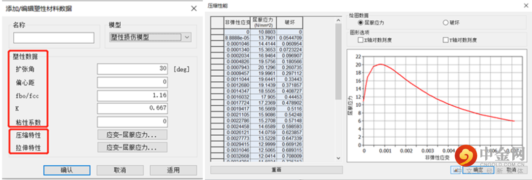 图3-2 midas FEA NX中定义混凝土损伤塑性
