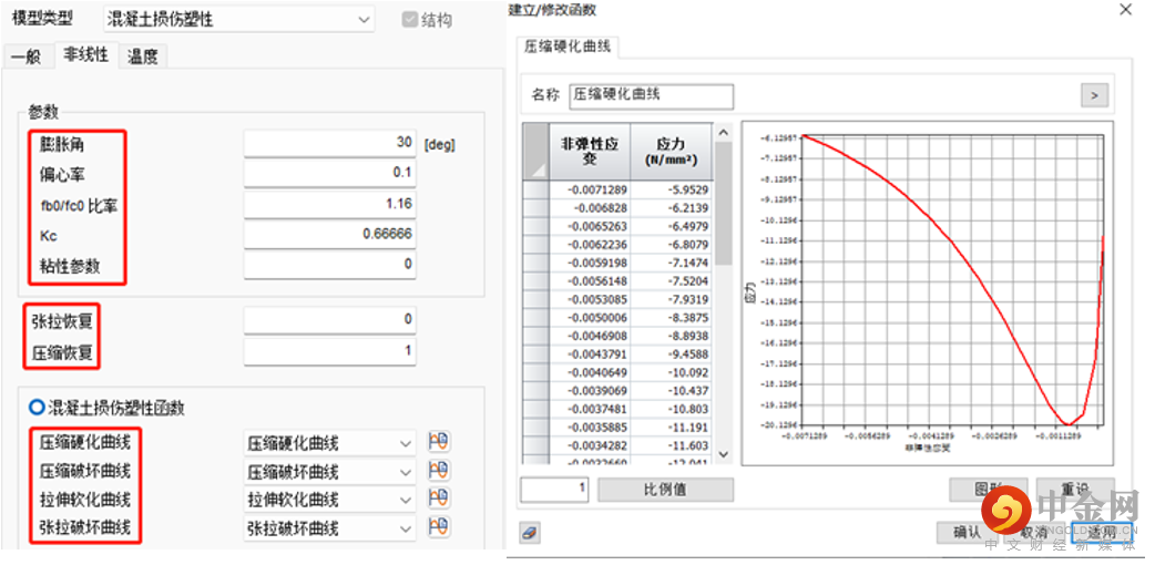 在midasGen和midasFEA NX中均有混凝土损伤塑性模型,如图3-1和3-2所示。