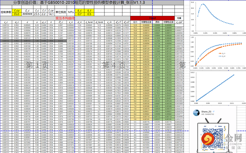 下图为一个计算混凝土损伤本构的小工具,可关注图中公众号获得,仅供参考。