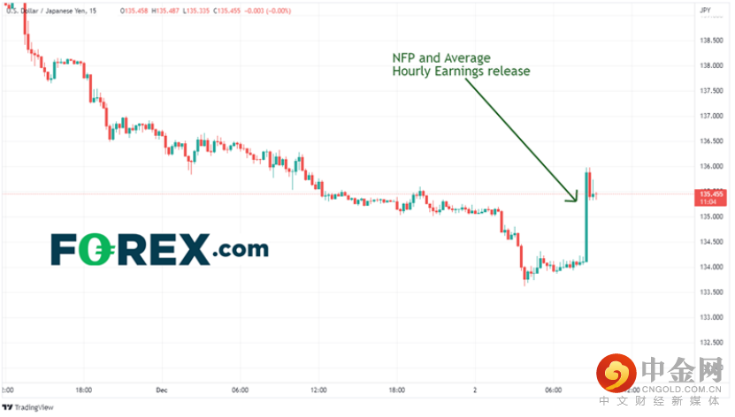 美元市场似乎认为有加息75个基点的可能性。在数据发布后,美元/日元立即从134.10跳涨至135.98,因为交易员担心工资可能会蔓延至通胀,因此,美联储可能不得不在12月的利率决策会议上改变立场。