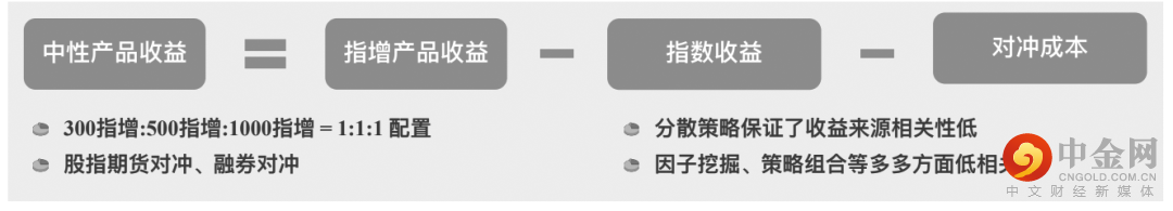 我们知道,指数增强的收益=指数收益(Beta)+超额收益(Alpha);股指期货空头收益=-指数收益(Beta)-对冲成本。因此在不考虑资金占用损失效率的情况下,市场中性策略的最终收益=超额收益-对冲成本。