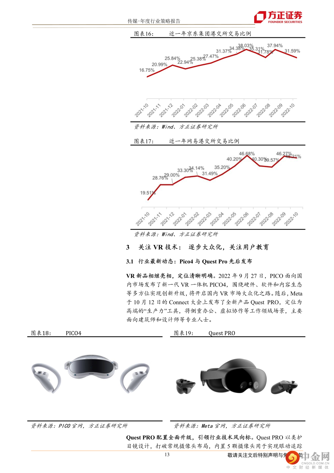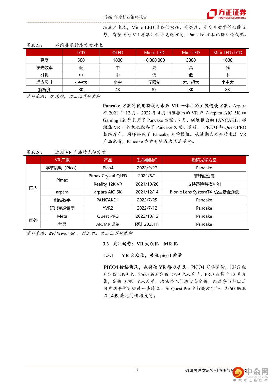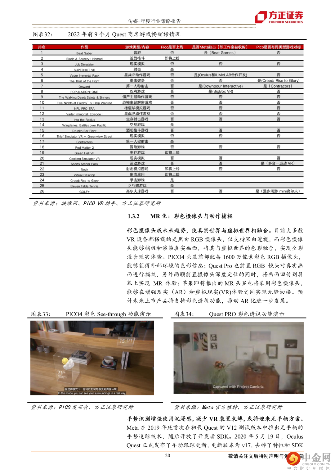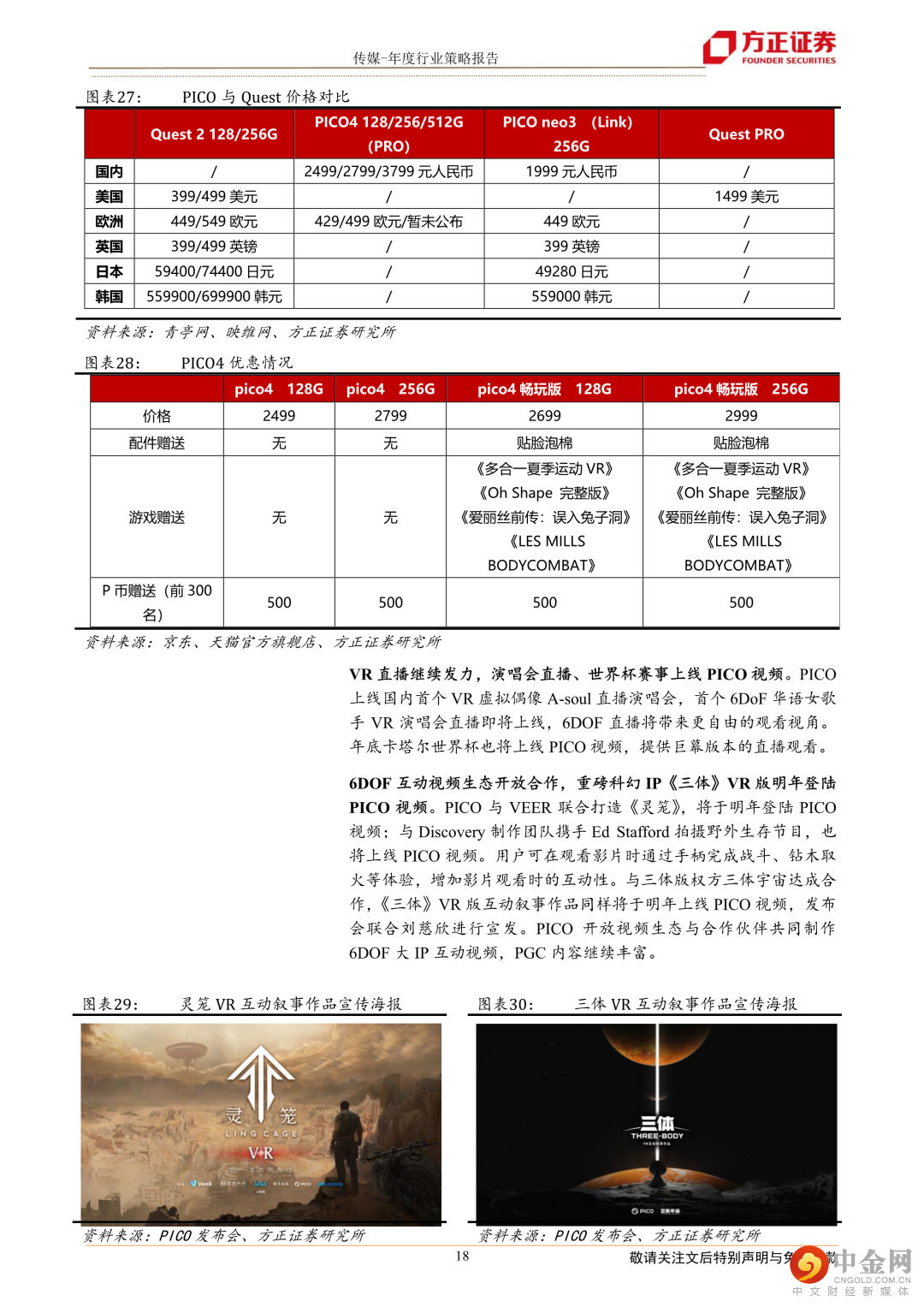 1)行业动态:Pico4和Quest pro先后发布。Pico4定位大众化,价格亲民;Quest Pro主要面向建筑师和设计师等专业人士。