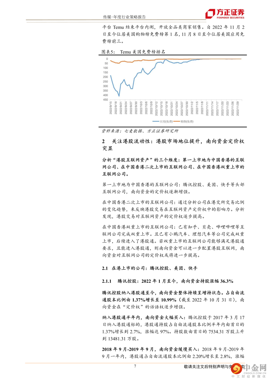 1)第一上市地为中国香港的互联网公司:腾讯控股、美团、快手等头部互联网公司,南向资金的定价权逐渐增强。