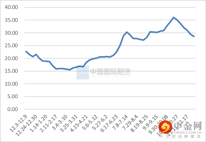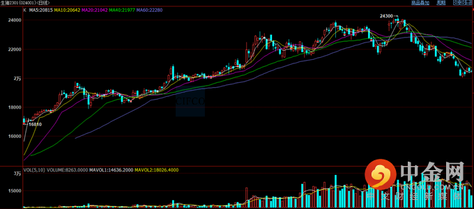 11月生猪期货起伏较大,呈现涨-跌-涨-跌走势,但重心整体依旧下移,主力01合约从月初22000以上跌至20000点附近。生猪期货下跌最主要原因在于现货下跌所带动,基差修复,目前看盘面价格和现货保持基差较合理。主力01合约在跌破22000之后开始加速,但试探20000点未成功,20000点表现较强支撑。
