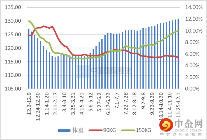今年冬天气温较高,腌腊灌肠有所延迟,12月进入腌腊窗口期,大猪需求增加,前期压栏和二次育肥生猪将会大量出栏,预计出栏均重继续增加。