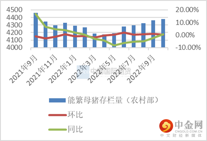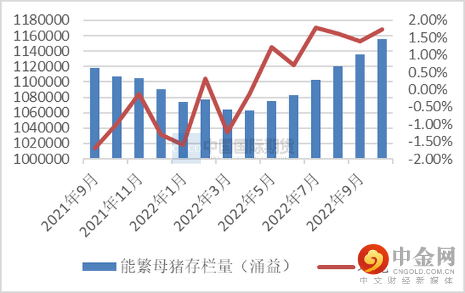 根据农业农村部数据显示,10月末能繁殖母猪存栏4379万头,环比增加0.40%,同比增加0.70%,较4月份低点连续6个月环比增幅,较4100万头母猪基础量增加6.8%。根据涌益咨询数据显示,能繁母猪环比增幅 1.73%,后备母猪留种量环比增加 1%。根据农产品网数据显示,能繁母猪环比增加 2.81%,同比增加 3.47%。