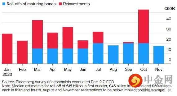 然而,随着解除近5万亿欧元(5.3万亿美元)的债务(这一过程被称为量化紧缩),政策制定可能会变得更加令人担忧。超过九成接受调查的经济学家认为,量化紧缩将通过允许债券到期,而不是主动出售债券来实现的。