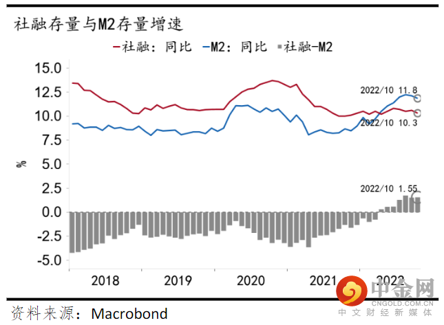 10月我国新增社融9,079亿(预期1.65万亿),较去年同期少增7,097亿;对实体经济发放的人民币贷款4,431亿(预期8,242亿),较去年同期少增3,321亿;M2同比增长11.8%(预期12.0%)。