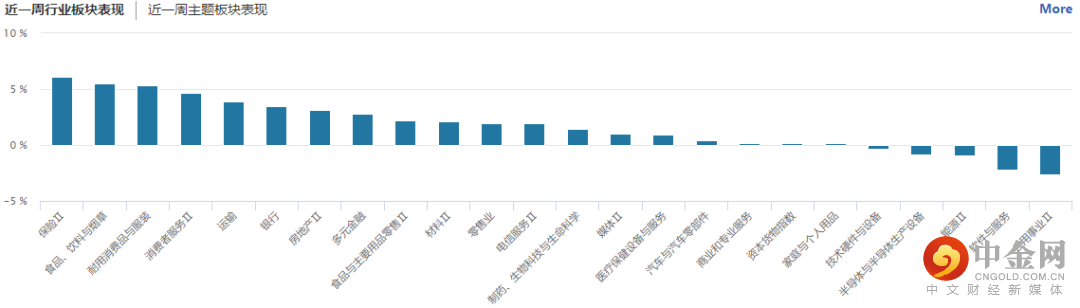 从行业板块表现来看,保险、食品饮料、消费品、运输、银行、地产等涨幅居前;公用事业、软件与服务、能源、半导体等跌幅居前。