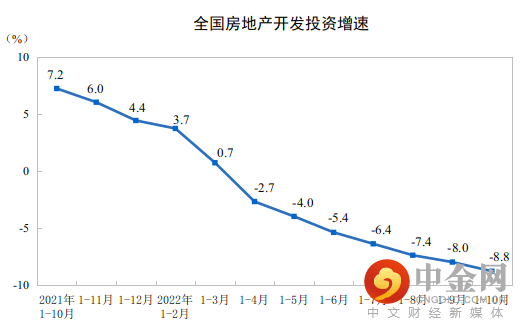 1—10月份,全国房地产开发投资113945亿元,同比下降8.8%;其中,住宅投资86520亿元,下降8.3%。