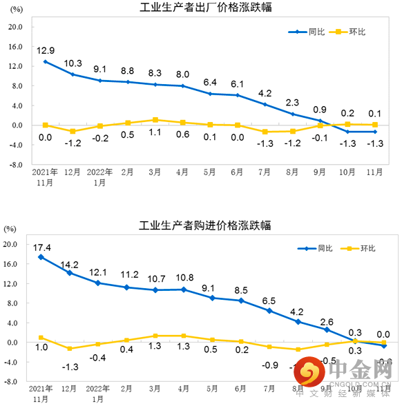 2022年11月份,全国工业生产者出厂价格同比下降1.3%,环比上涨0.1%;工业生产者购进价格同比下降0.6%,环比持平。1—11月平均,工业生产者出厂价格比去年同期上涨4.6%,工业生产者购进价格上涨6.7%。