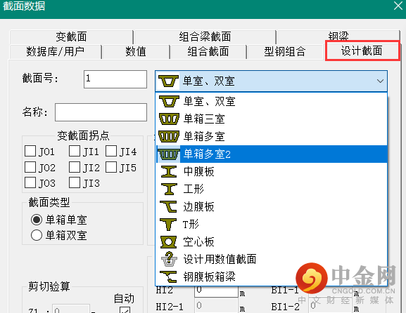 对于混凝土箱梁快速建模助手,支持的主梁的截面是设计截面类型中单箱多室、单箱多室2、设计用数值截面类型的截面。