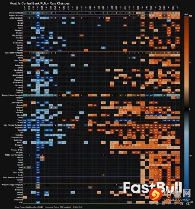 从这份新冠疫情爆发以来的统计图表中,我们不难看出全球各国央行从竞相放水试图拯救经济,到通胀失控被迫疯狂加息的转变。