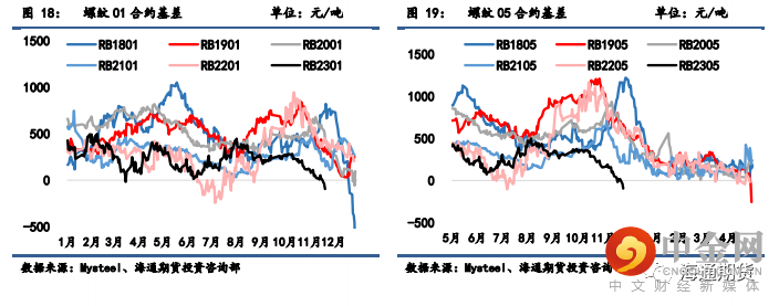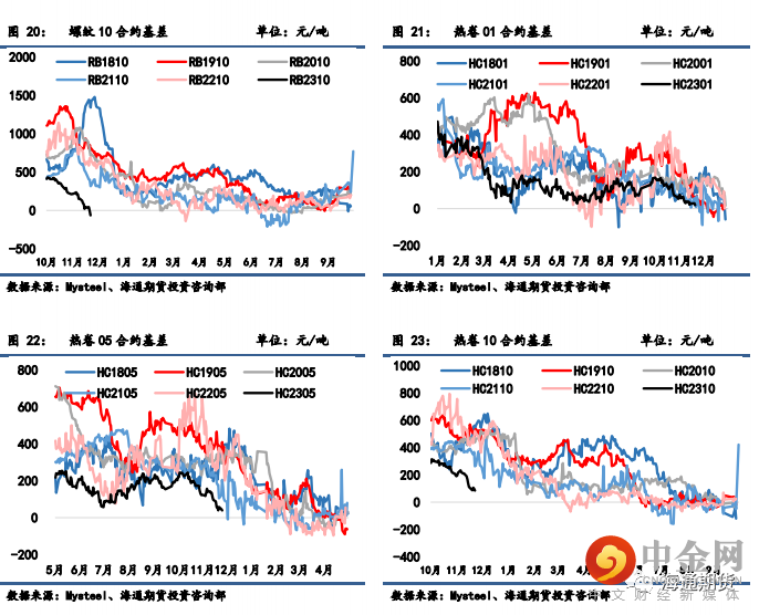 螺纹 01 合约基差从 6 缩小至-95 元/吨,螺纹 05 合约基差从-18 缩小至-95 元/吨,螺纹 10 合约