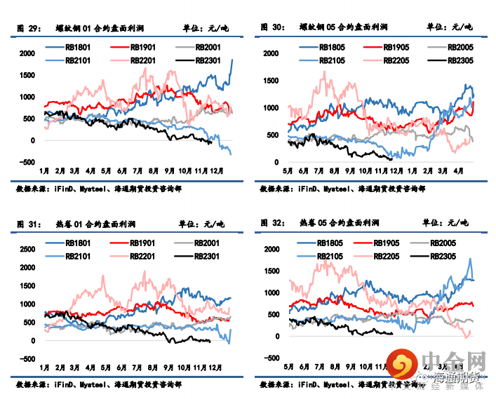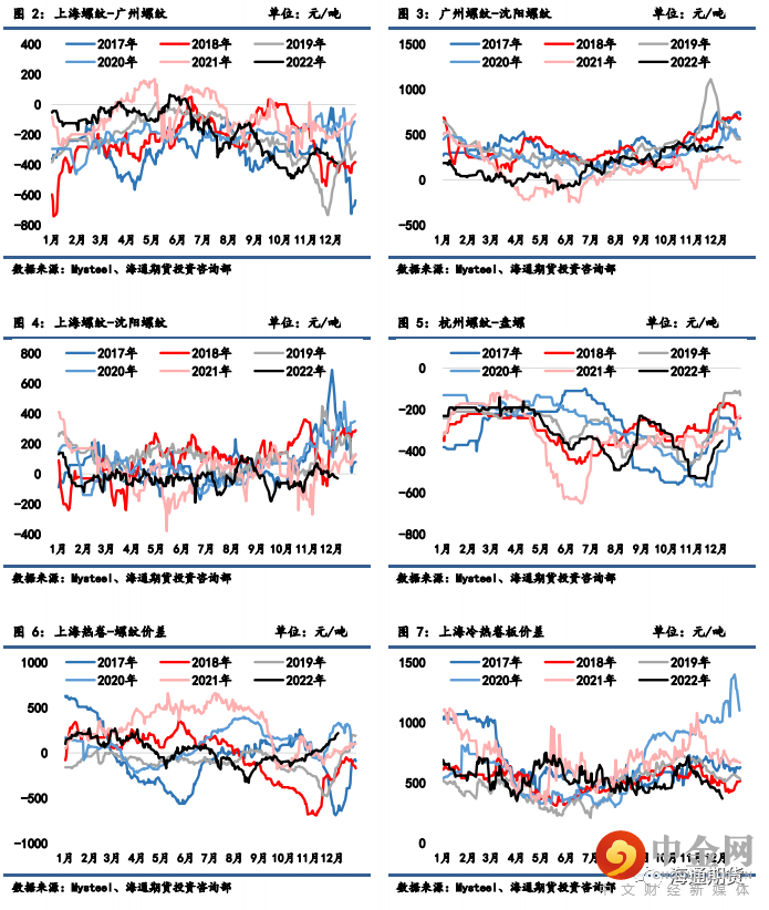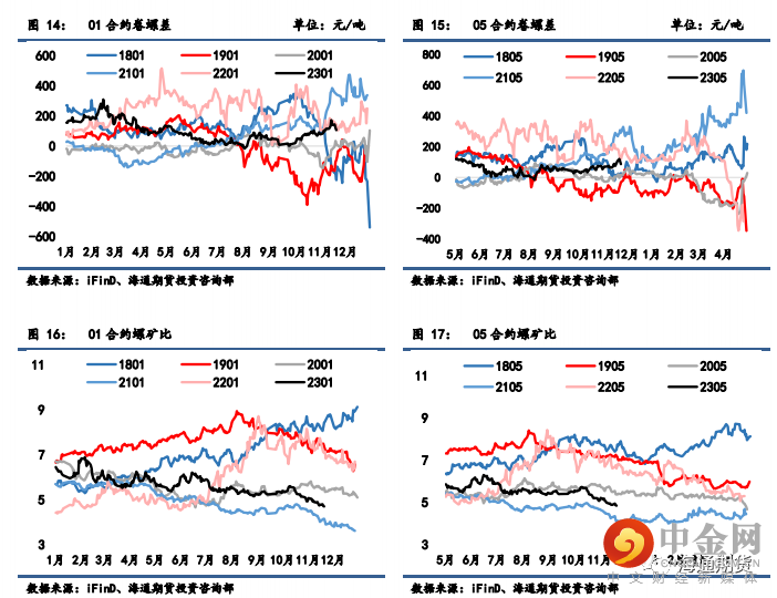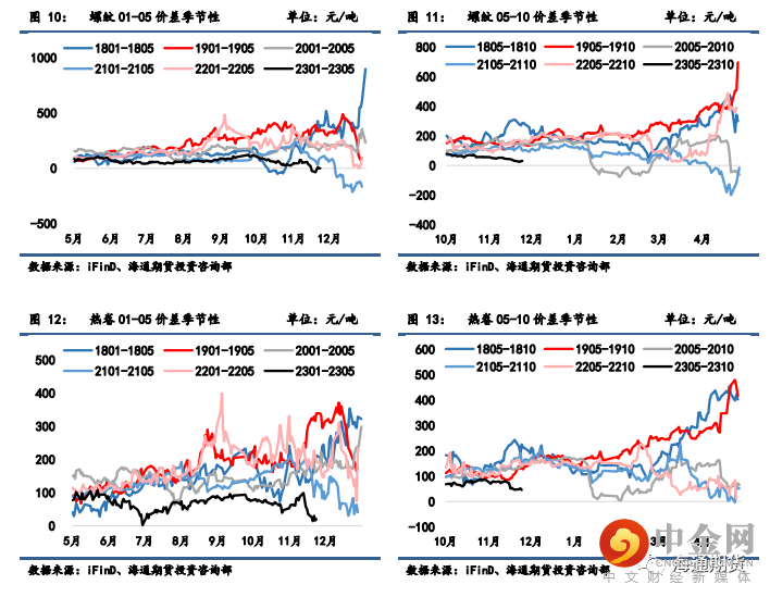 螺纹 01-05 月间价差从-24 回升至 0 元/吨,05-10 月间价差从 38 降至 31 元/吨;热卷 01-05 月