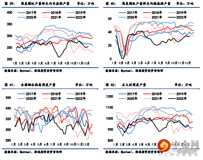 上周螺纹钢产量周环比增加 3.5 万吨至 287.64 万吨,同比增速环比前期扩大,同比去年水平增