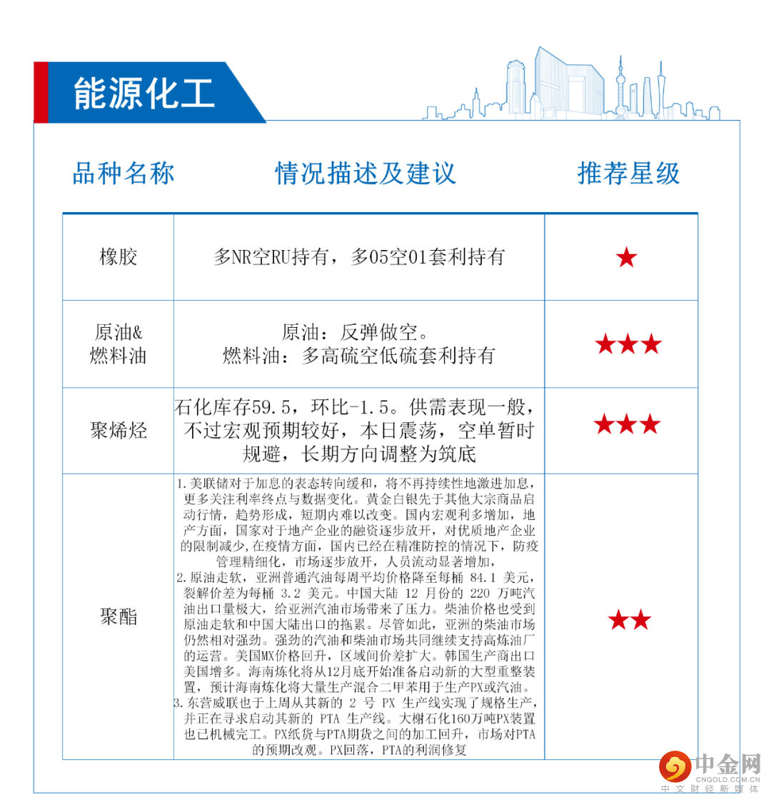 国债期货窄幅震荡多数小幅收跌,10年期主力合约跌0.11%,5年期主力合约跌0.05%,2年期主力合约接近收平。银行间主要利率债收益率走势分化,中长券走弱,短券表现略好。债期今日大幅拉涨,推动因素有二。一是市场消息央行今早窗口指导理财子不许“砸券”,静待后续举措缓解流动性风险。二是明天(15日)MLF到期5000亿元,市场预期MLF利率将下调。尽管信用市场延续回调,收益率上行导致理财赎回,再到利率债面临抛压的扰动尚未结束,但近一个月债期已然低位盘整略有企稳。随着疫情和地产政策逐步明朗落地,政策单一方向进一步加码的空间不大,这也意味着债期短期进一步下挫的概率较低,可短线做多博反弹。后市关注MLF续作和中央经济工作会议对于明年经济工作的部。