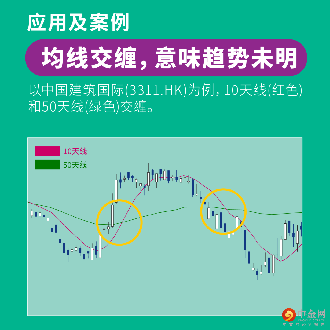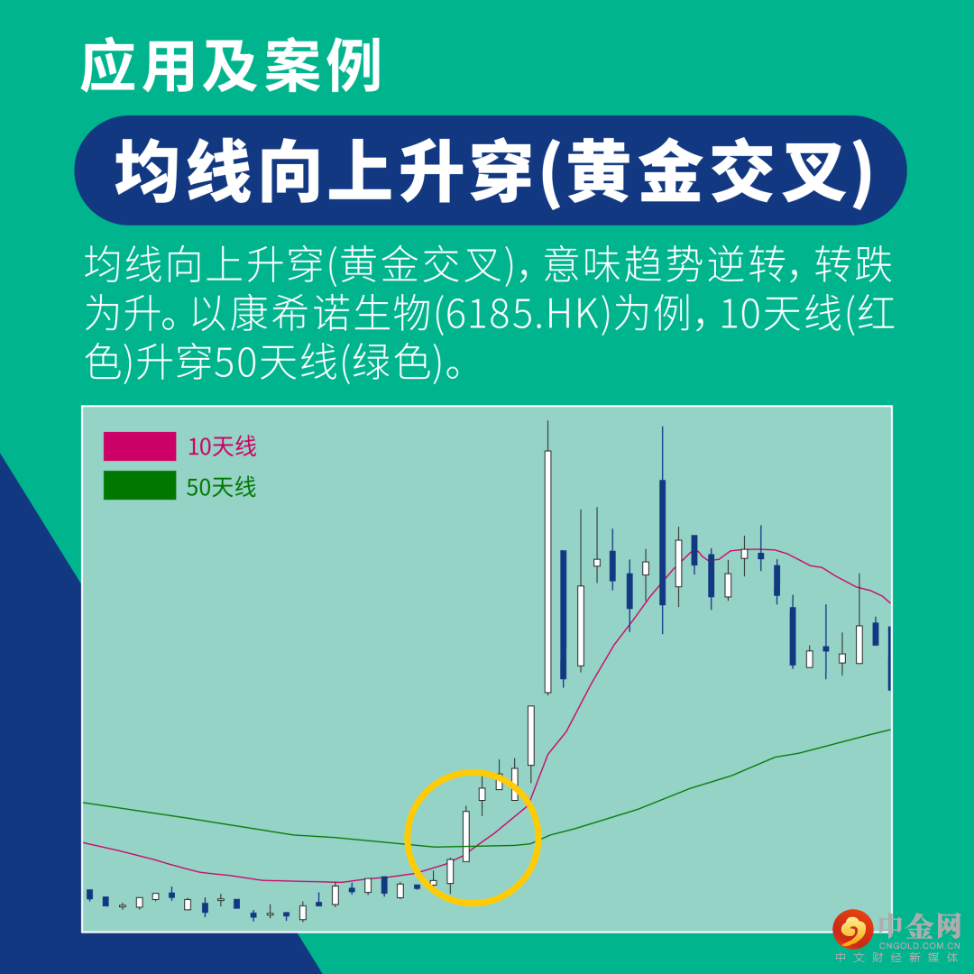 移动平均线(简称MA)是利用统计分析的方法,将一定时期内的价格加以平均并将均值连接起来。移动平均线是用来观察价格波动趋势的技术指标之一,价格高于均线,趋势偏好;低于均线,趋势偏淡。常用平均线有10天、20天、50天及250天等。值得注意是,若市场趋势不明显,处区间上落状况,移动平均线的作用将减弱。