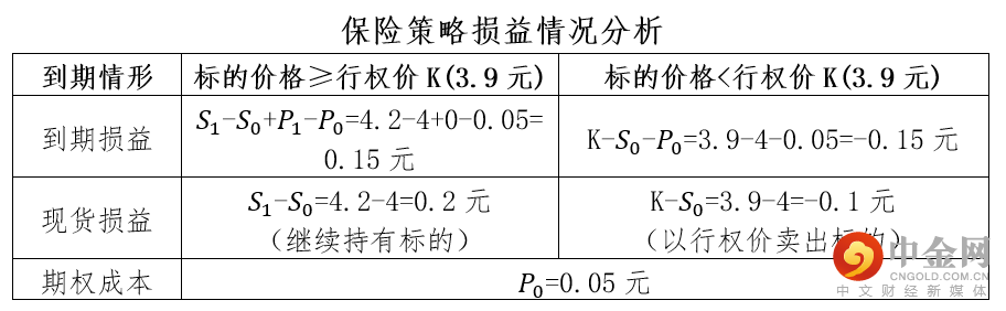 假设期初标的价格S0=4元,行权价K=3.9元的近月认沽期权价格P0=0.05元。通过持有标的和买入认沽期权可构建保险策略。