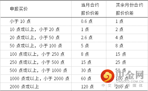 期权合约最优买卖报价价差小于等于下表价差时,不得询价。