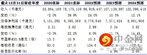虽然受到上游涨价影响,公司的毛差承压,但我们认为2022年下半年冬季上游成本再次大涨可能性低以及公司下半年顺价进一步开展,公司毛差将逐步趋于稳定。2022年底房地产利好频出,公司的新增接驳量及增值服务业务将有望受益。公司作为具有央企背景的燃气公司,也将受益于本轮央企国企估值合理回归。我们预计22/23/24年公司营收分别为969亿/1071亿/1201亿港元,归母净利润约68亿/76亿/87亿港元。给予目标价50港元,相当于2023年15倍PE,维持买入评级。