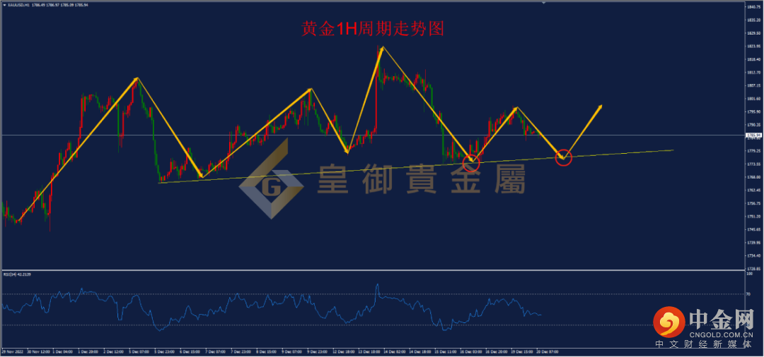 从1H周期走势结构看,黄金经历上周的冲高回落后,目前再次陷入震荡区间,昨日一度冲击1798一线失败后下探,预计今日经维持震荡,下方最为关键的是趋势线支撑1777一线,从目前周线结构看,黄金连续三周站上1790一线斐波那契支撑,预计未来行情仍有望继续向上,目前15分钟级别MACD出现底背离信号,今日如有回踩可轻仓尝试多单。