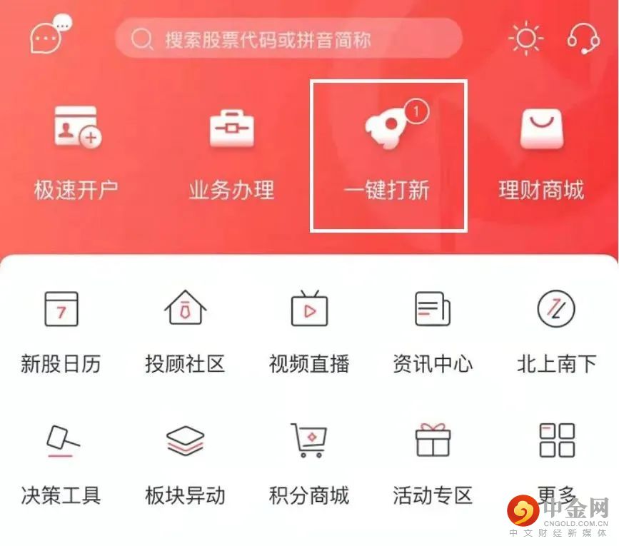 下载国元点金APP,点击【一键打新】