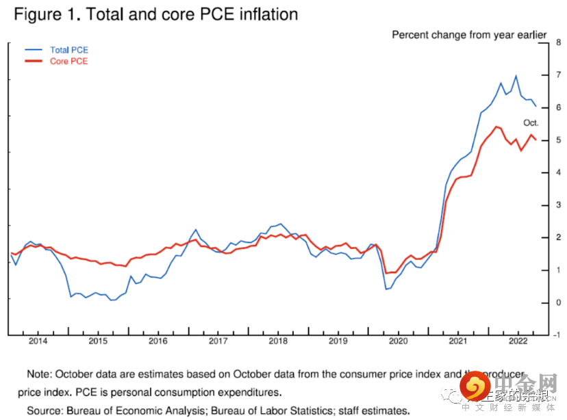 第一幅图,蓝线是总的PCE指数通胀率,而红线即为核心PCE指数通胀率。