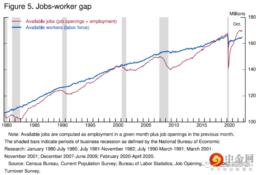 一部分的参与率缺口反映了那些因为患有新冠肺炎或遭受“长新冠”困扰而仍未加入劳动力大军的工人,但美联储经济学家最近的研究发现,参与率的缺口现在主要是由于超额退休。