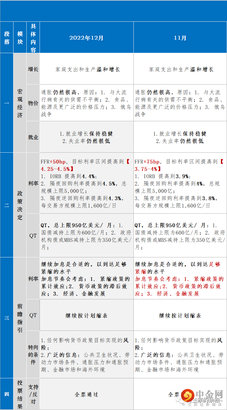 1)联储宣布加息50bp,基准利率回到4.25-4.5%的区间,符合市场预期;