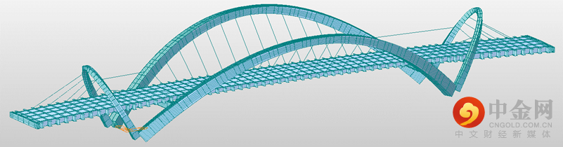 拱桥体系,突破了有推力拱桥对墩台和地基要求甚高的限制,桥梁的中跨吊杆可以对桥面系形成弹性支承,大大减少主梁的弯矩,与一般有推力拱相比,其弯矩和剪力要小很多,充分发挥了拱承压能力高的特点。