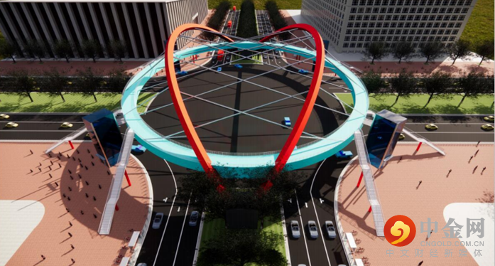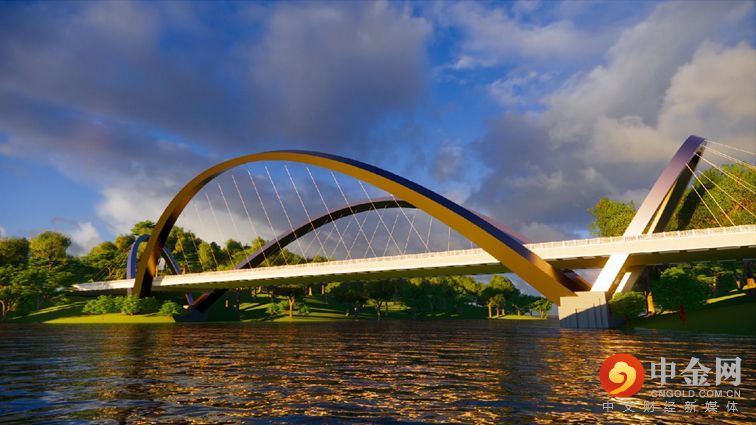 古琴式蝴蝶背人行天桥,造型概念来自“琴鸣蝶舞”,将古琴等具有文化代表性意义的意象融入设计当中,主拱两面设置双吊索,并同时在造型上突破,形如两道弯月横卧道路交叉口,犹如两把古琴组合而成,将桥梁完美地融入步行系统中。