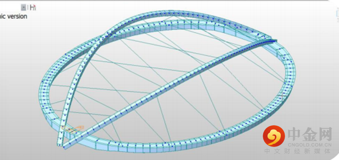 梦之舟大桥为蝴蝶式中承式组合拱桥,由150m蝴蝶拱加两侧各50m斜拉桥组成,全桥长250m。全桥采用纵横梁组合桥面,主拱及斜拉塔均采用箱型结构。