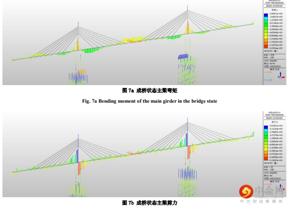 桥塔非设计截面建模,故主要针对主梁和下部结构通过CDN进行验算,从而导出了符合预期目标的计算书。梁端处与0号块处均为空心截面,其余重量以横隔板荷载的形式布置,但实际施工图纸为实心截面,可能对梁端处、0号块处的验算结果造成影响。预应力钢束布置位置因手动判断识别,与图纸实际情况稍有误差,可能对个别变截面部位处的验算造成影响。