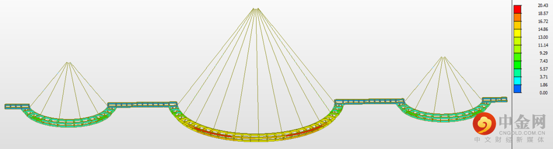 对于拉索,则进行单独验算,采用安全系数法对拉索截面进行验算,通过桁架单元应力与其承载力进行对比,安全系数大于2.5即符合要求;