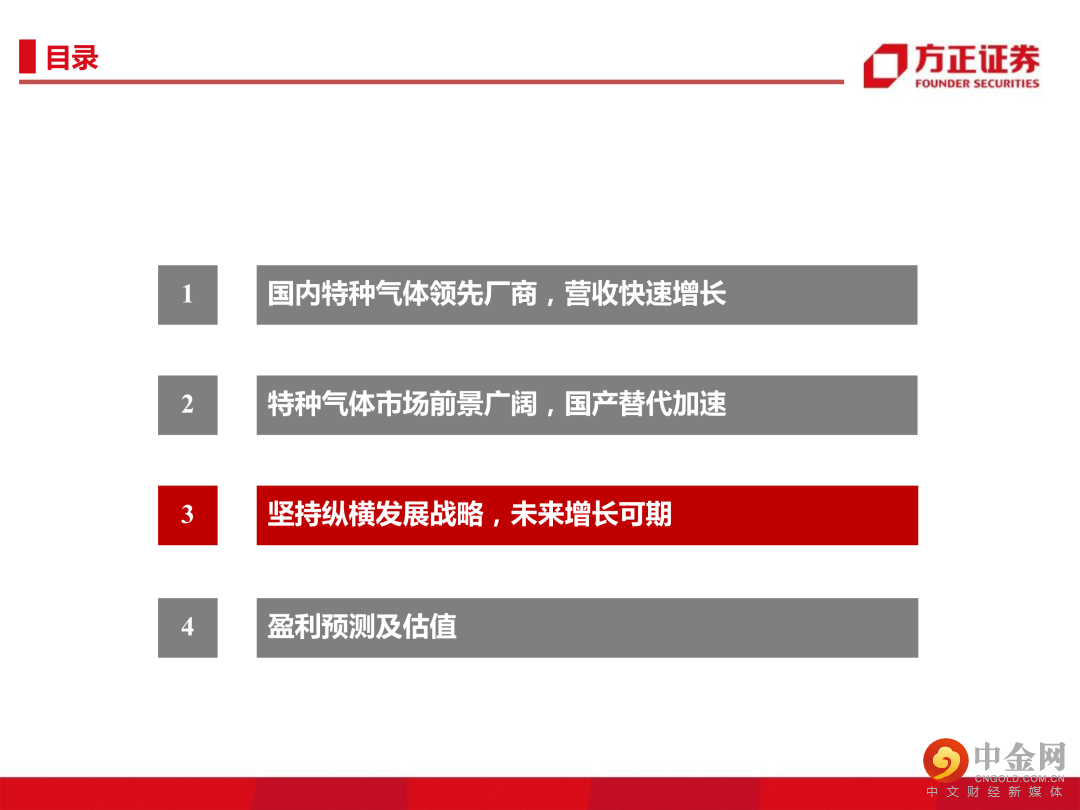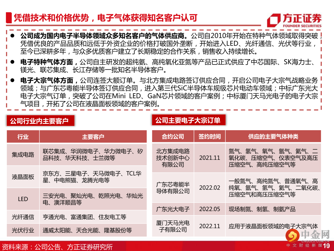 坚持纵横发展战略,未来增长可期。公司在电子大宗气体和电子特气方面均有所布局,凭借雄厚的技术实力、优异的产品质量等优势,公司获得了众多新兴行业知名客户的广泛认可,成为国内电子半导体领域众多知名客户的气体供应商。