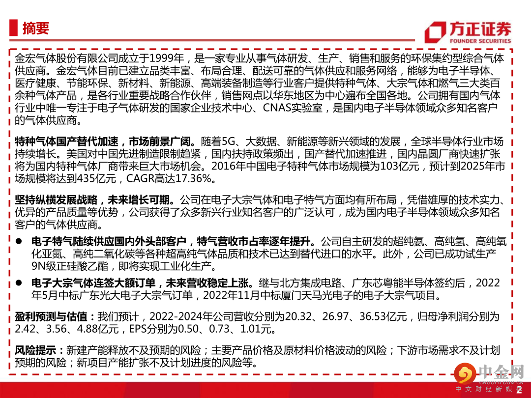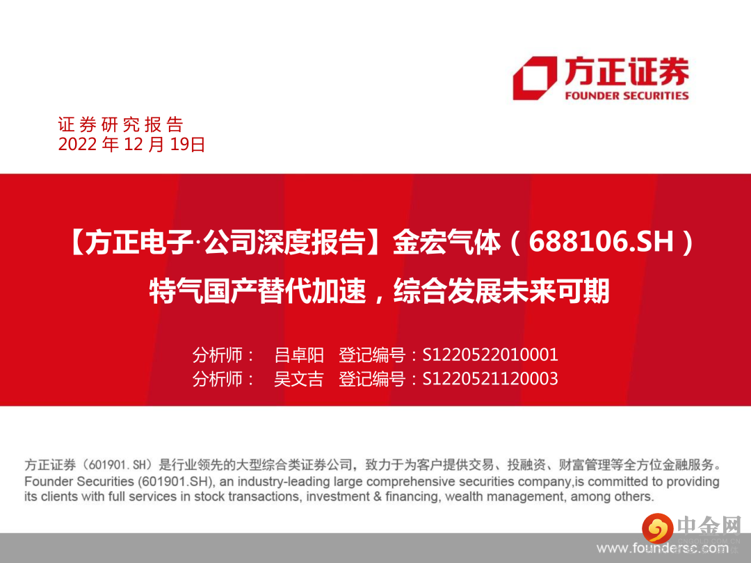本文来自方正证券研究所于2022年12月20日发布的报告《金宏气体:特气国产替代加速,综合发展未来可期》,欲了解具体内容,请阅读报告原文。
