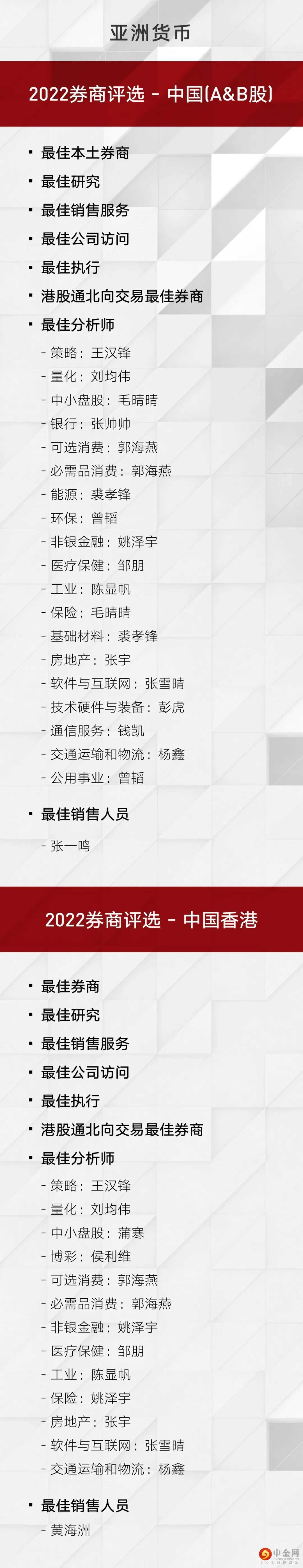“最佳本土券商”“最佳研究”“最佳销售服务”