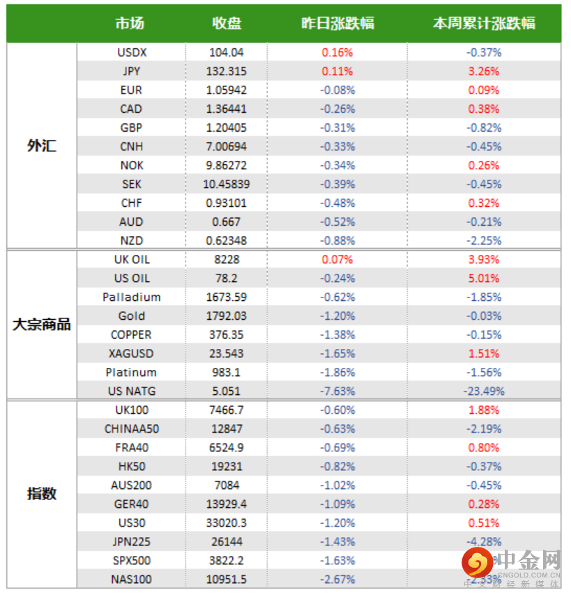 美国原油结束连续三连阳,黄金冲击前高1824失败后收盘回落至1792附近。