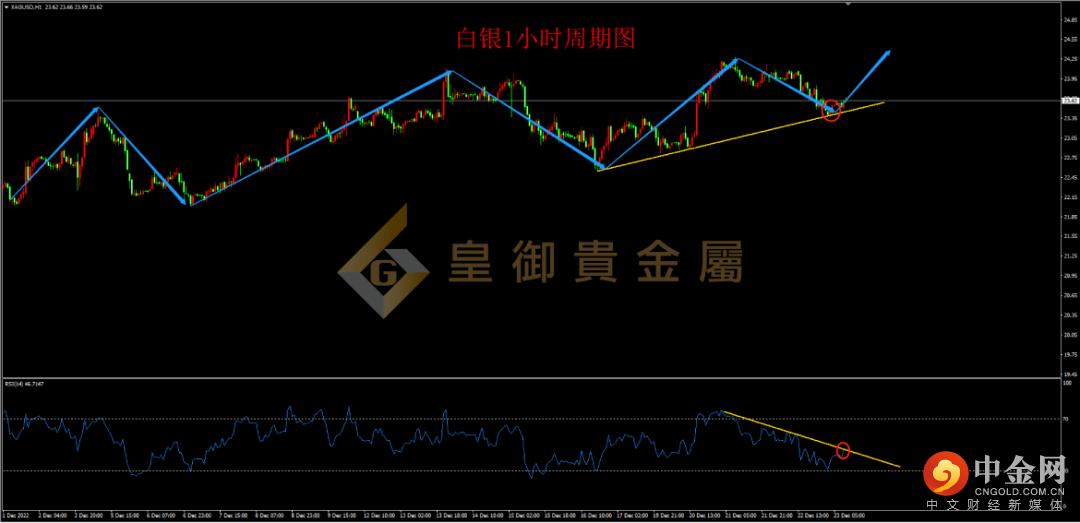 从1H周期走势结构看,白银昨日出现调整,不同于黄金的快速杀跌,本轮白银走出先快跌后企稳的走势,目前逐步在1小时以及30分钟240日均线附近,23.40一线企稳,并尝试继续上行,从周线级别看,白银仍未触及重要关口24.60一线,行情仍有继续向上动能,目前15分钟MACD出现底背离信号,今日如有回踩机会,可轻仓尝试多单。